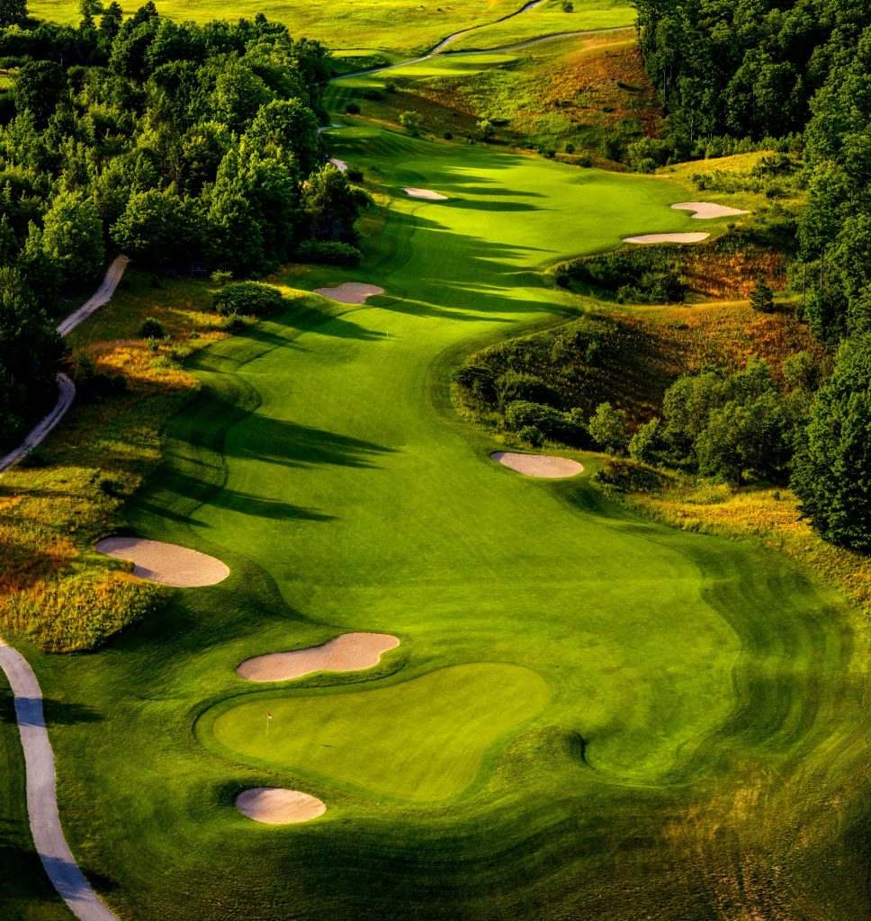 The Tribute is a 7,347-yard tribute to the beauty of Northern Michigan in the spring, summer and fall. PGA Tour veteran and golf television analyst Gary Koch and designer Rick Robbins teamed up to design the course. They went up and down and all around 1,100 acres of hardwood forest in the Sturgeon River Valley basin to create the course. It won awards when it made its debut in 2002, and if it debuted again today, it would win more awards. It’s that good.